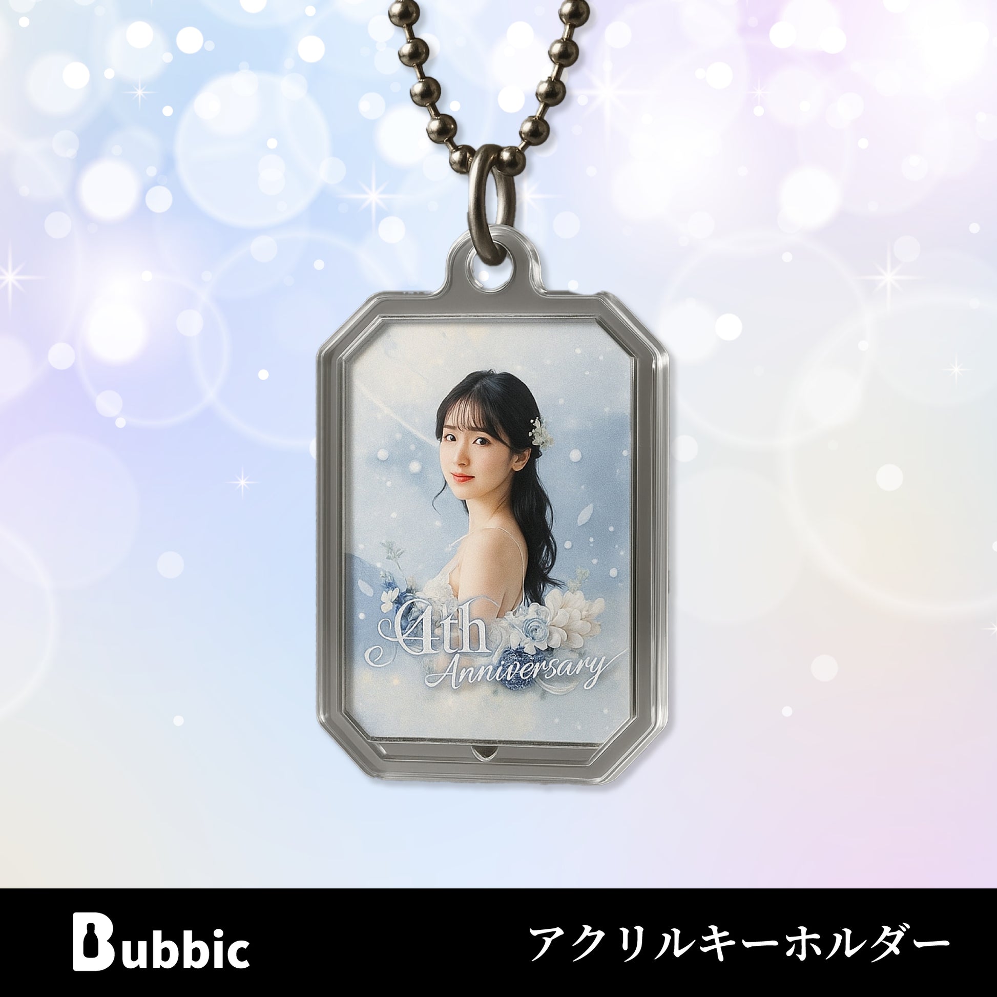 お客様が指定したデザインで作れる、記念品やノベルティにぴったりのアクリルキーホルダーです。